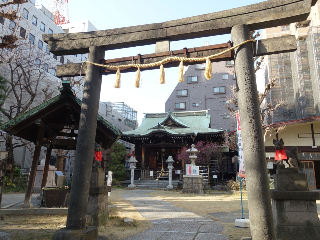 千束稲荷神社は日比谷線三ノ輪駅から南へ徒歩3~4分の場所にあります。「たけくらべ」の舞台になった神社とされ、そのゆかりで境内には樋口一葉の胸像があります。狛狐の姿はあるものの、鳥居や本殿に朱色はなく、色彩的には稲荷神社らしくない点も興味深く感じました。