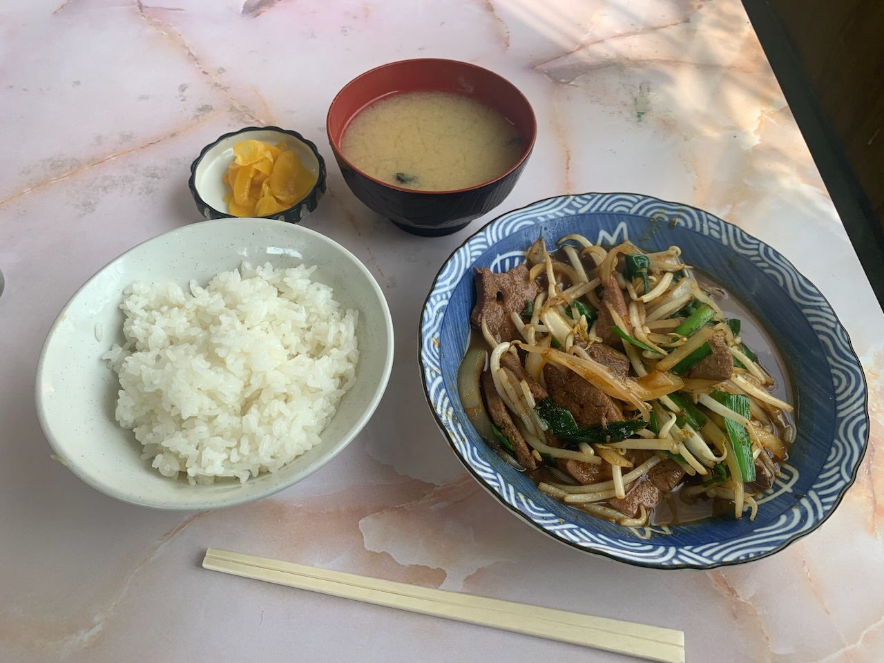地元で人気の定食屋のようです。駐車場は三台ほどありますが、満車の状態。店内もお客さんで混雑しておりましたが、なんとか席についてレバニラ炒めをいただきました。時々厨房のご主人がおかみさんを叱る声が聞こえてきます。庶民的なお料理でした。