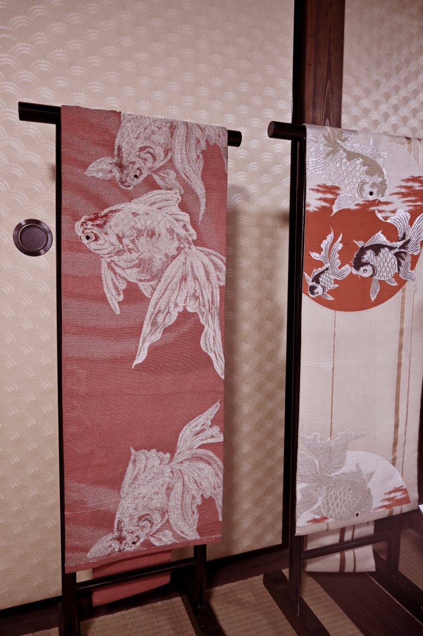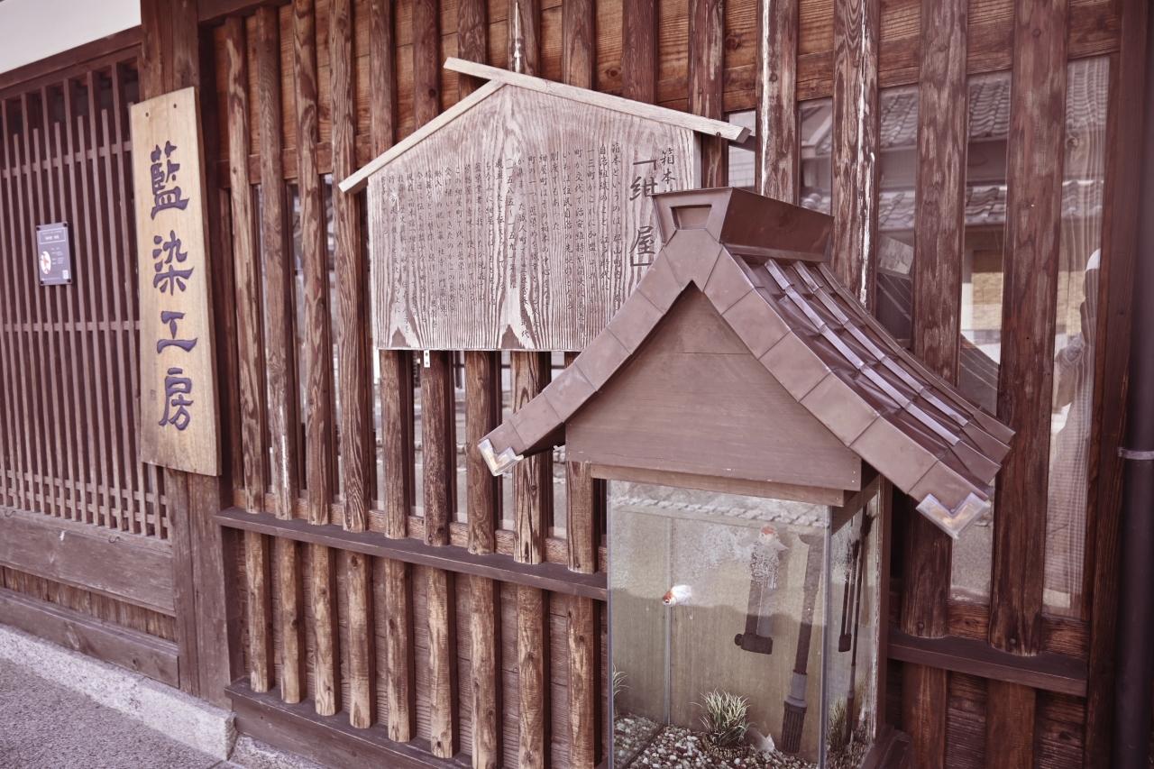 紺屋川(水路)で、染めた布や糸をさらしていました