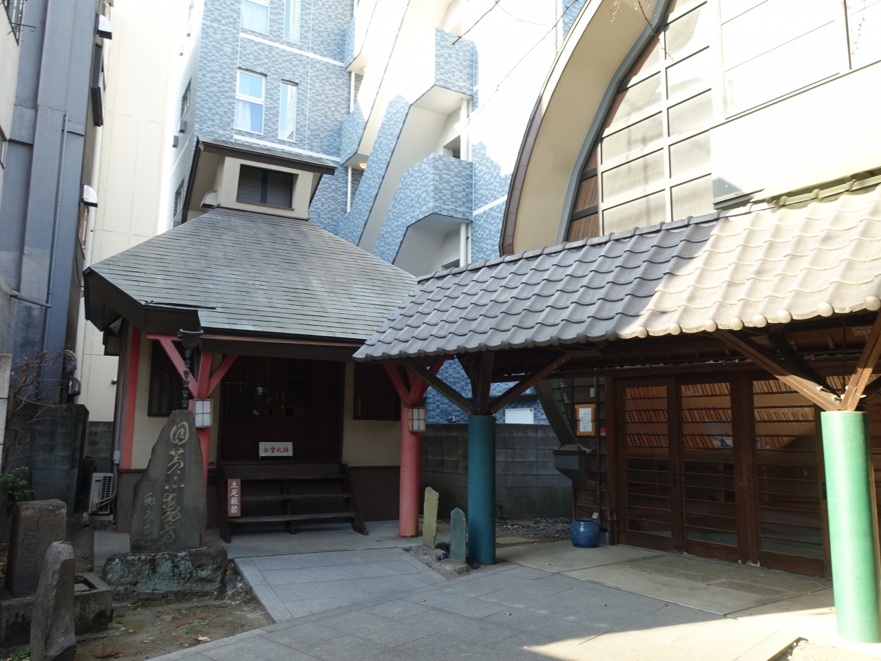 天台宗寺院の永久寺は、日比谷線三ノ輪駅近く、明治通り沿いにあります。江戸五色不動のひとつで、案内板には「目黄不動」と記載されています。