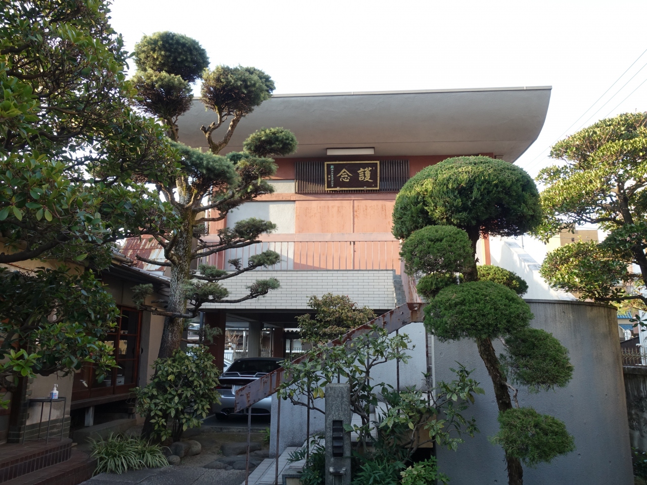 道林寺は、台東区東浅草の住宅街に建つ浄土宗寺院です。すぐ北にある春慶院を訪れた際にあわせて足を運びました。境内は狭いですが、緑が多く植栽も良く手入れされています。その奥に見える本堂はコンクリート造りのようで、淡いオレンジの色彩が印象的でした。