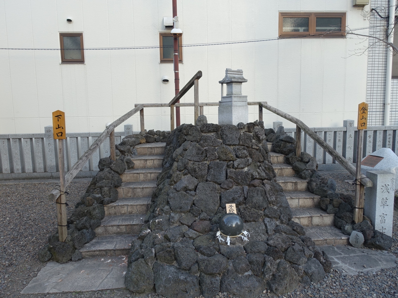 浅草の観音裏エリア、浅草5丁目に「浅草富士浅間神社」があります。境内にはやや小ぶりの「富士塚」があります。私たちが参拝した時、近隣の小学生と思しき子どもたちが、下校途中に富士塚の前でお辞儀をする姿が目に入りました。地元の方々から厚く信仰されているのが伝わり、この富士塚が身近に感じられました。