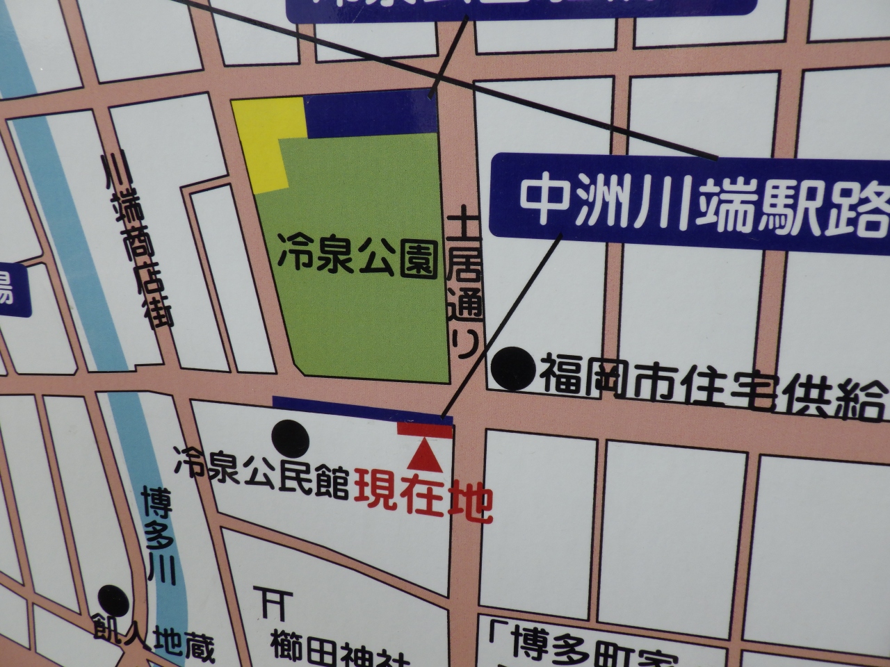 駅を出て櫛田神社方面に進むと左手にある公園がこちらの冷泉公園です。