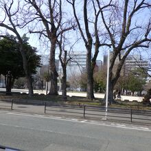 周りに木々があり真ん中に大きな広場のようなものがある都心でよく見かける四角い形をした公園でした。