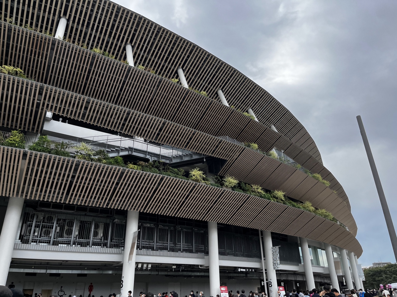 設計は隈研吾氏で、木材を至る所に使用していて、とても温かみのあるスタジアムでした。