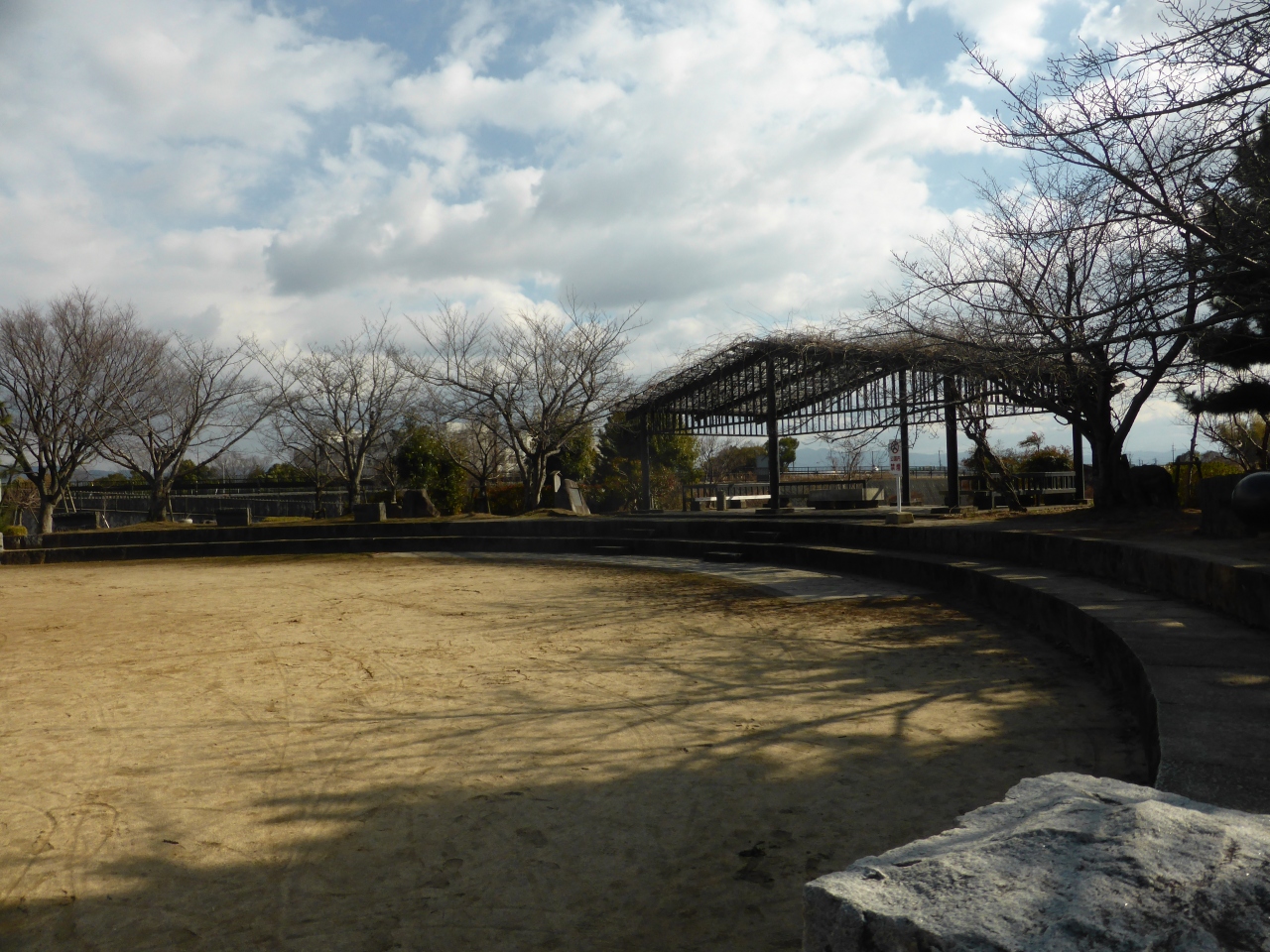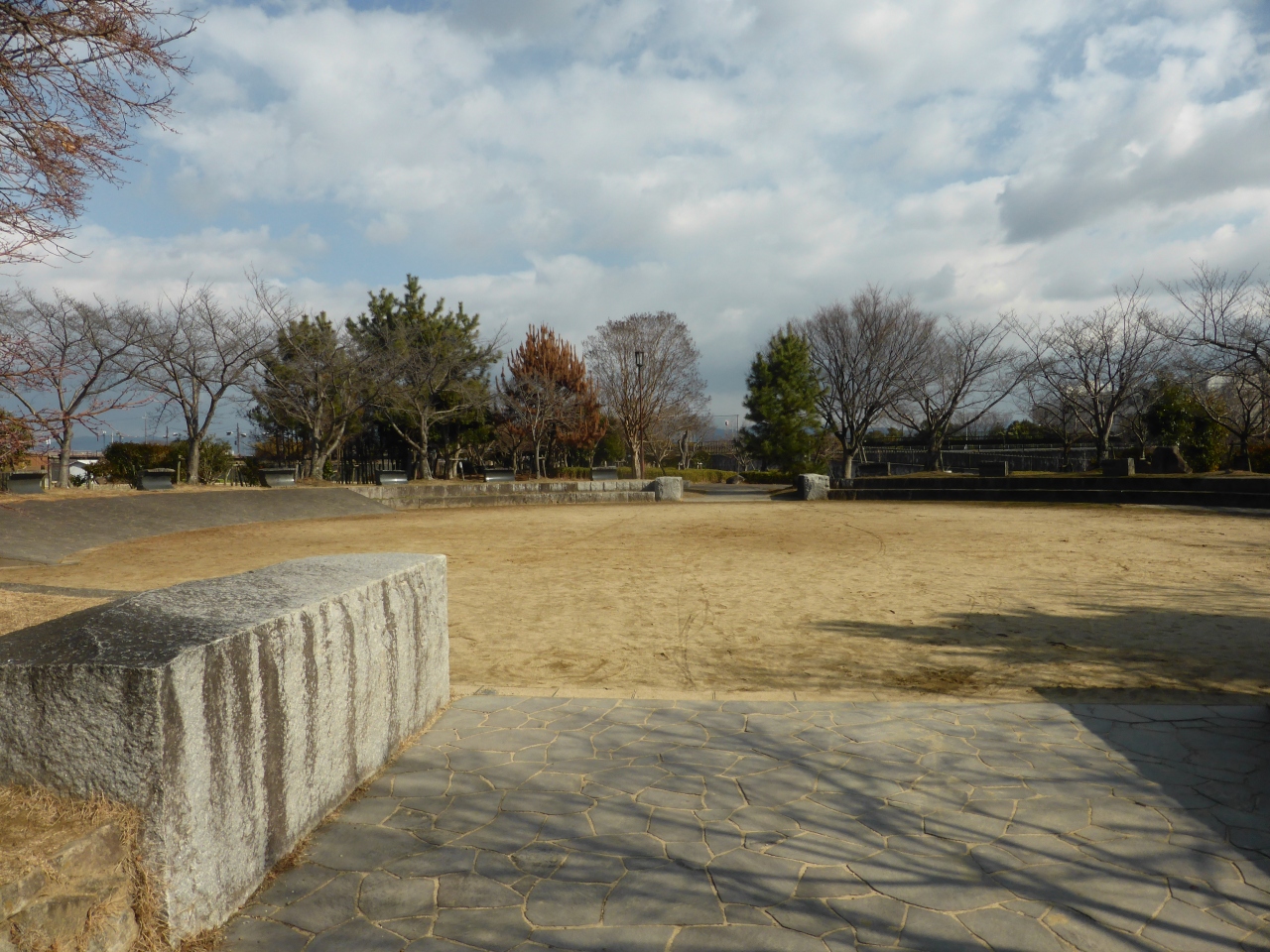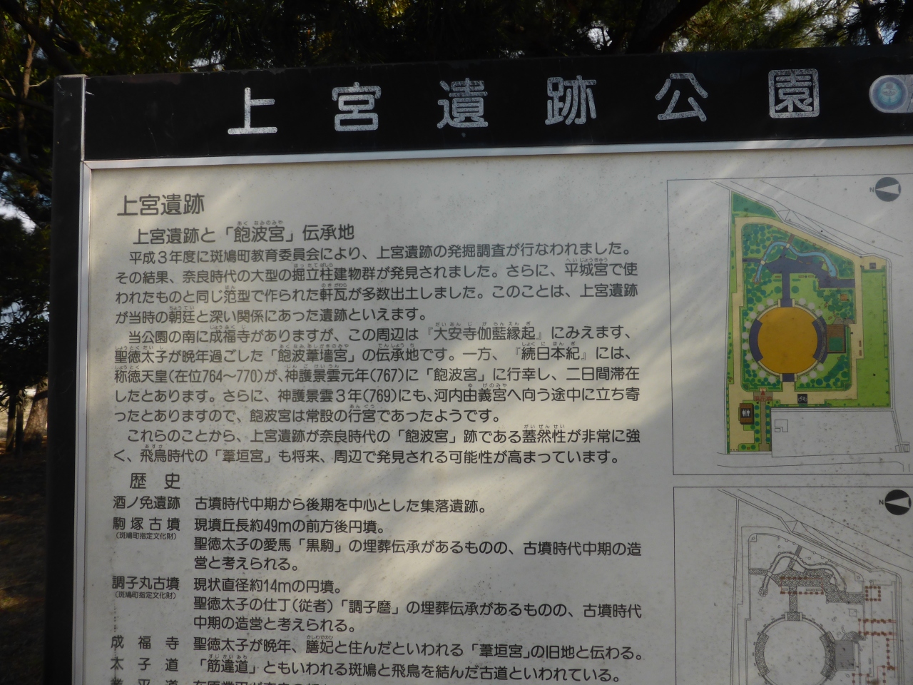 JR法隆寺駅から東へ徒歩20分、法隆寺の南東1.5㎞の位置にある遺跡公園。富雄川の畔で円形の広場があり、万葉歌碑が周りに建っています。大型の掘立柱建物群があった事や発掘された瓦の文様が平城京で用いられた物と同じであった事から、称徳天皇が行幸の際に宿泊した飽波宮ではないかとされています。一方で聖徳太子ゆかりの伝承もあります。