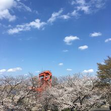 ランニングコースの途中にあり現在使われている水門は青!こちらは赤門です。桜の時期はとても景色がキレイで多くの方の憩いの場となっています。大正13年(1924)竣工の水門。現在は近代化産業遺産として保存されているそうです。