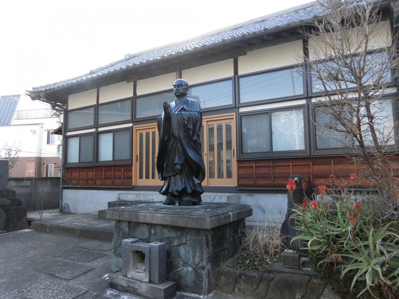 新宿の円通寺坂沿いを散策していた時に立ち寄ったお寺です。日蓮宗のお寺で、寺塀がとても鮮やかな黄色だったのが印象的でした。境内に入ると、本堂の前にどっしりとした日蓮上人増が置かれていて、落ち着いた雰囲気のお寺だと思いました。