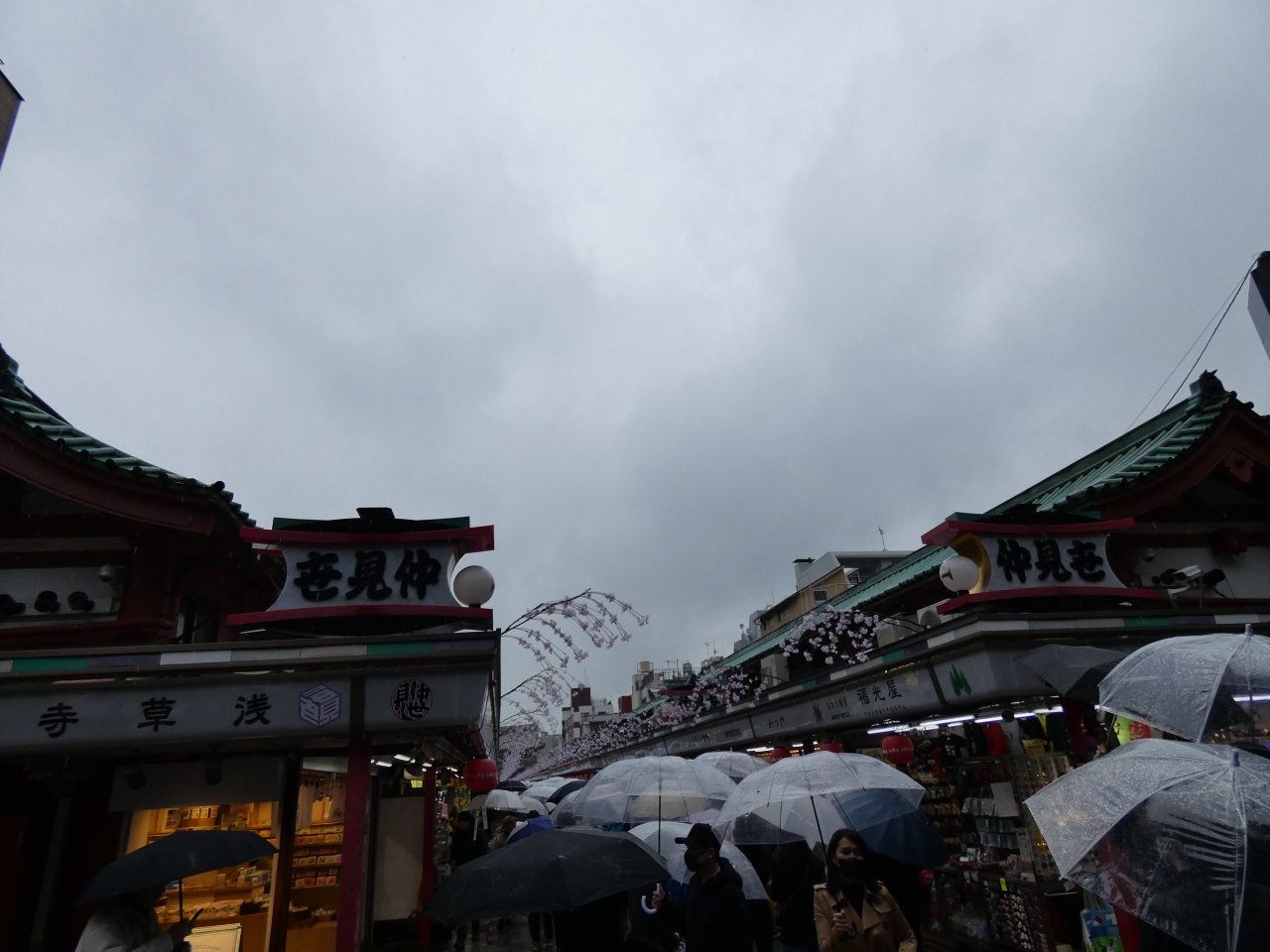 東京には何十回も訪問していましたが、今回の旅行で行ったことのないスポットでテレビでもよく見る雷門と商店街に行くことにしました。この日はあいにく雨でしたが、たくさんの人で埋め尽くされ、賑やかさが戻ったことにうれしく思い、通りをゆっくり回りました。