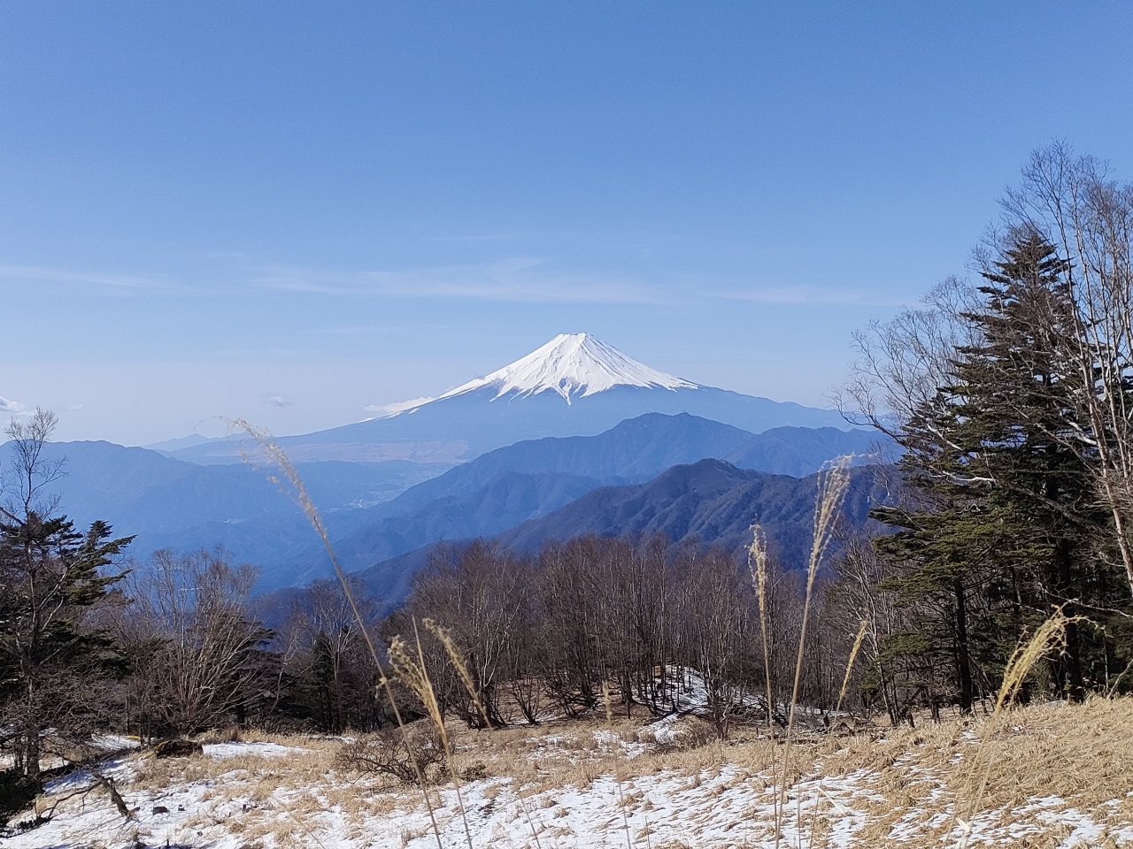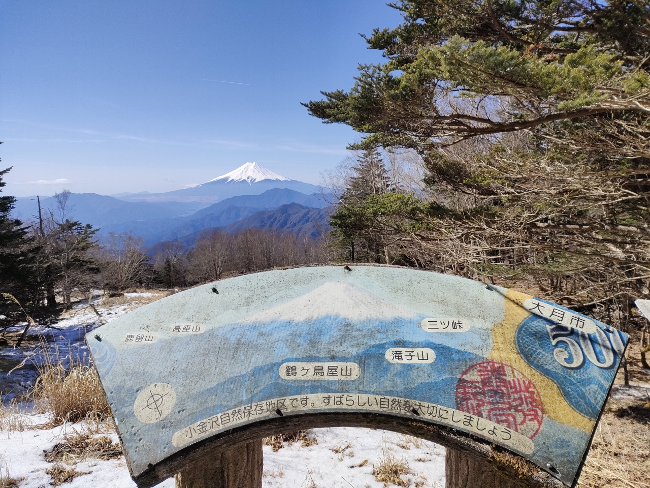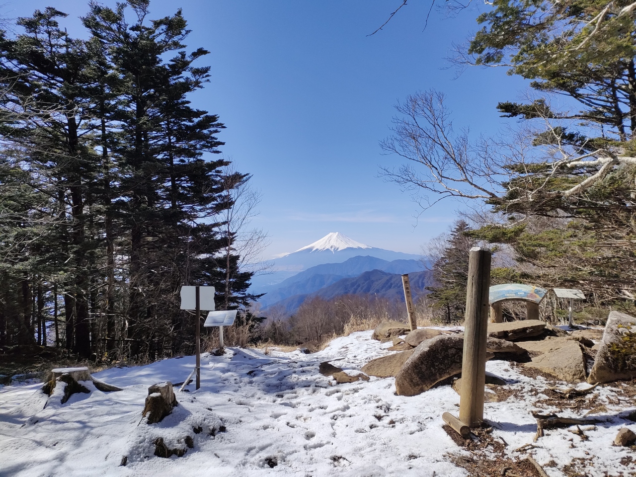アクセスですが、東京から中央道で最寄りの大月インターまでは、おおよそ1時間ちょっと。昔、地域のローカルテレビ局でよくCMを流していた真木温泉方面に向かい、閉鎖されている冬期間以外なら、標高1560mの大峠まで車で行くことができます(大峠まで舗装道路。10台分ほどの駐車スペースあり)。
