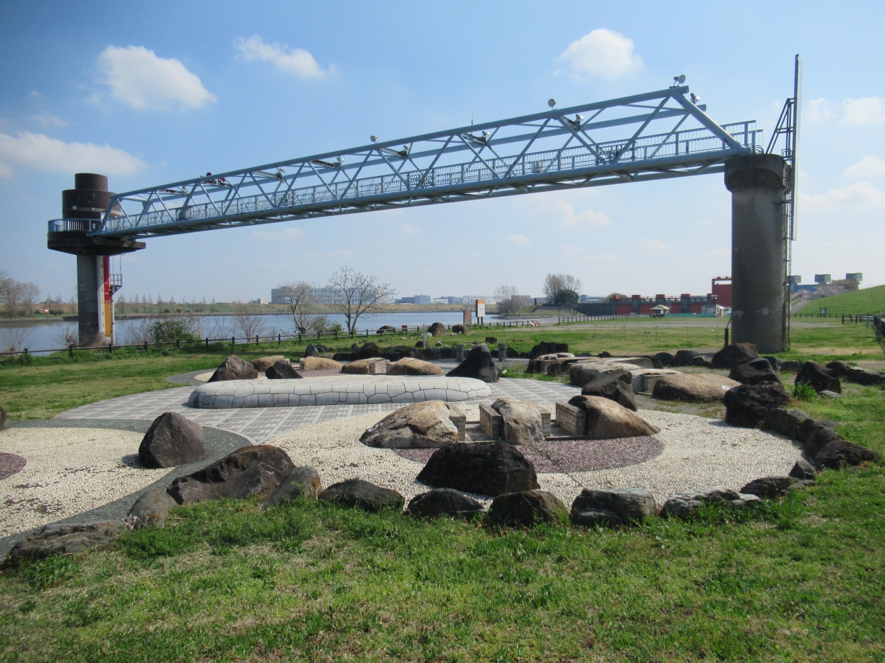 赤羽と川口をつなぐ新荒川大橋のたもとに造られている緑地です。新荒川大橋を挟んで、桜並木が続く赤羽桜堤緑地の反対側に造られています。緑地内にはバーベキュー広場や大きな石を配置したエリア、オレンジ色の旧岩淵水門などがあります。土手の上には桜並木も造られています。荒川沿いの遊歩道ではランニングやサイクリング、散歩、釣り、日向ぼっこなどを楽しんでいる人が多く見られました。天気が良い日には桜を眺めながら、気持ちよく散歩が楽しめる緑地です。