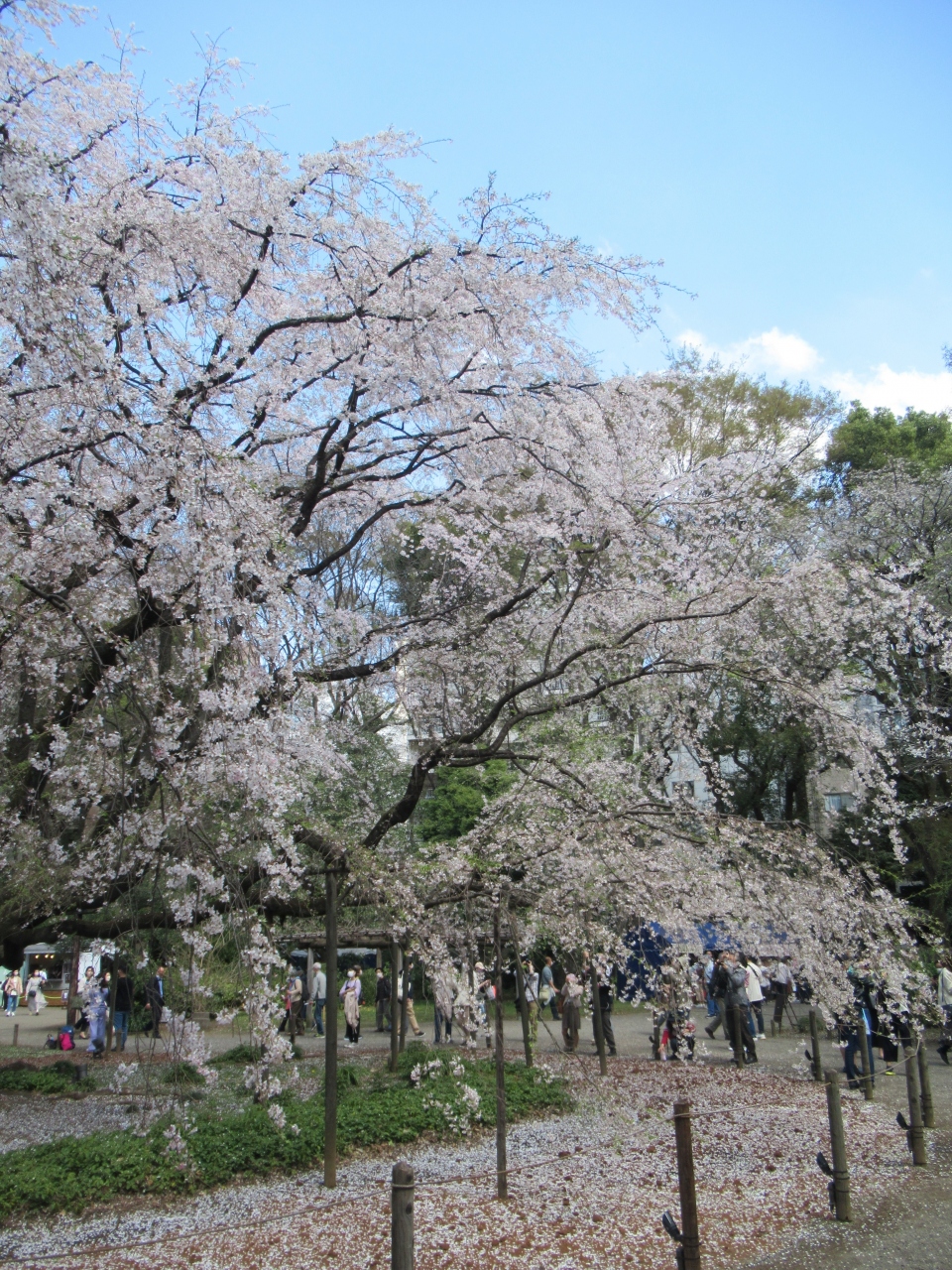 六義園の象徴とも言えるしだれ桜を見てきました。訪れる前日に電話で開花状況を尋ねたところ満開との返答でしたが、正面入口には散り始めと掲示されていました。それでも十分見ごたえがあり、平日にもかかわらず多くの人が訪れていて、どこから写真を撮っても人の姿が入ってしまうほどの賑わいでした。しだれ桜観賞後に庭園内を散策する人も多く、何度も訪れている庭園ですが、これほどの賑わいは初めてでした。桜の季節以外は静かな庭園ですが、桜満開の季節は大変な混み合うことがわかりました。