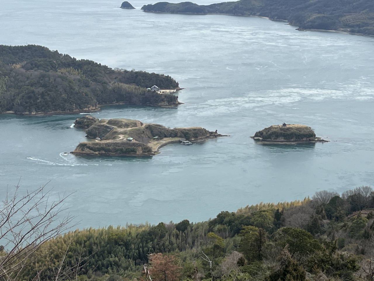 続日本100名城のスタンプをいただきに行こうとしたのですが、訪問日が月曜日にあたってしまい、ミュージアムのかわりに公民館に置かれているスタンプを押させていただくことができ、ありがたかったです。カレイ山展望公園から能島も見ることができました。