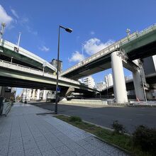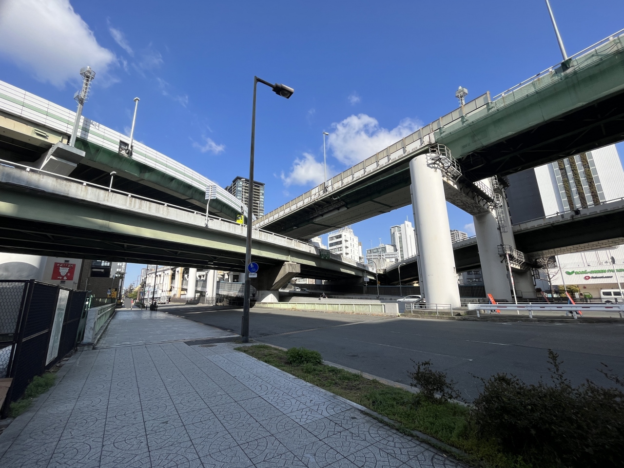 周辺を散策しているときに通りかかりました。東横堀川にかかり、農民たちが通っていたことからこのように呼ばれるようになったという歴史がある橋だそうです。現在は道が複雑に交差していて、都会らしさが感じられる光景になっていました。