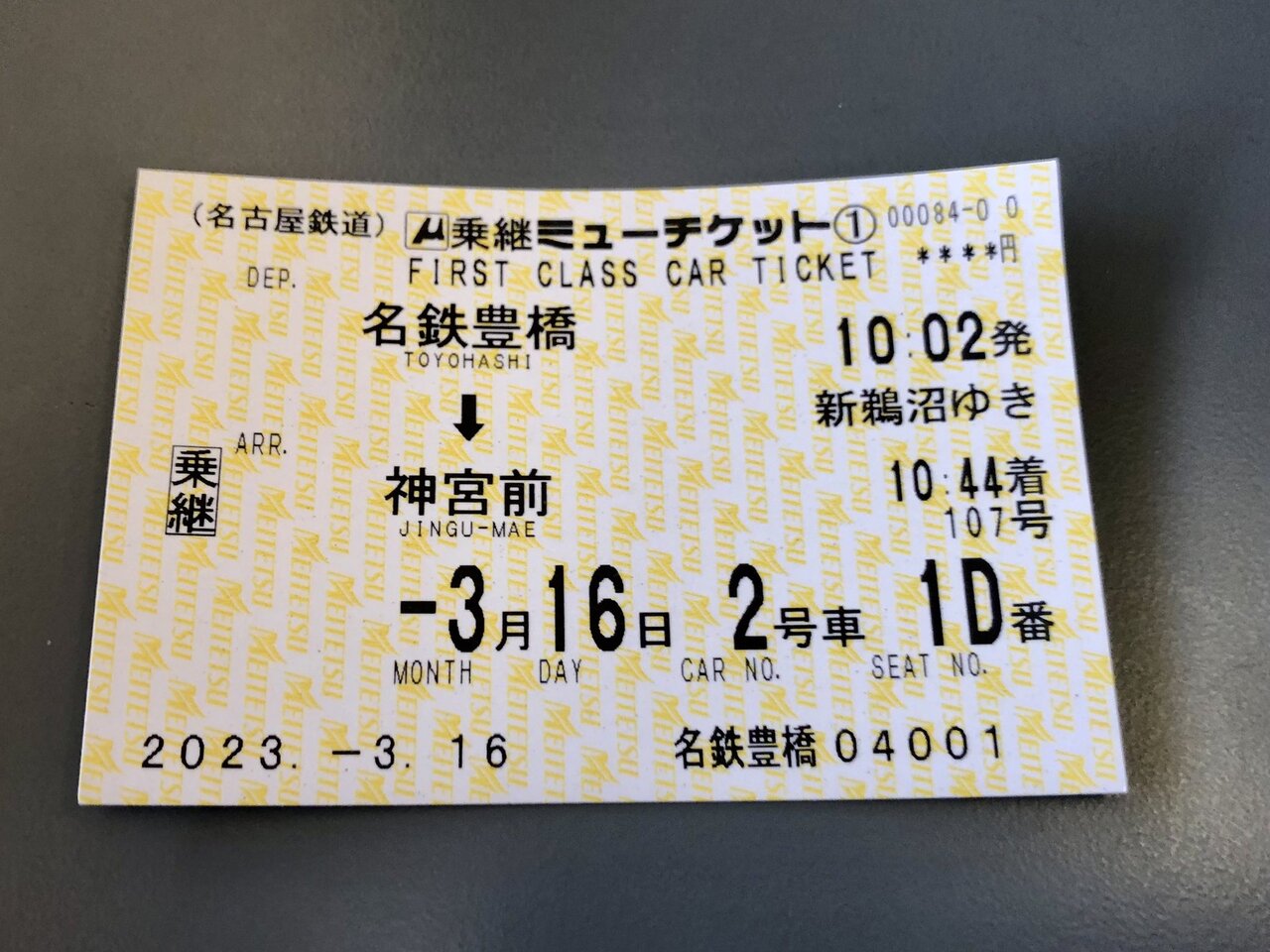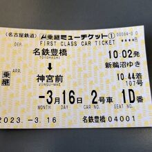 今回は、中部国際空港に行くので、豊橋駅から乗り換えの神宮前駅まで、ミューチケットを購入し、名鉄パノラマスーパーに乗車しました。パノラマスーパーは、一般車両とミューシート(有料)に車両が区別されています。