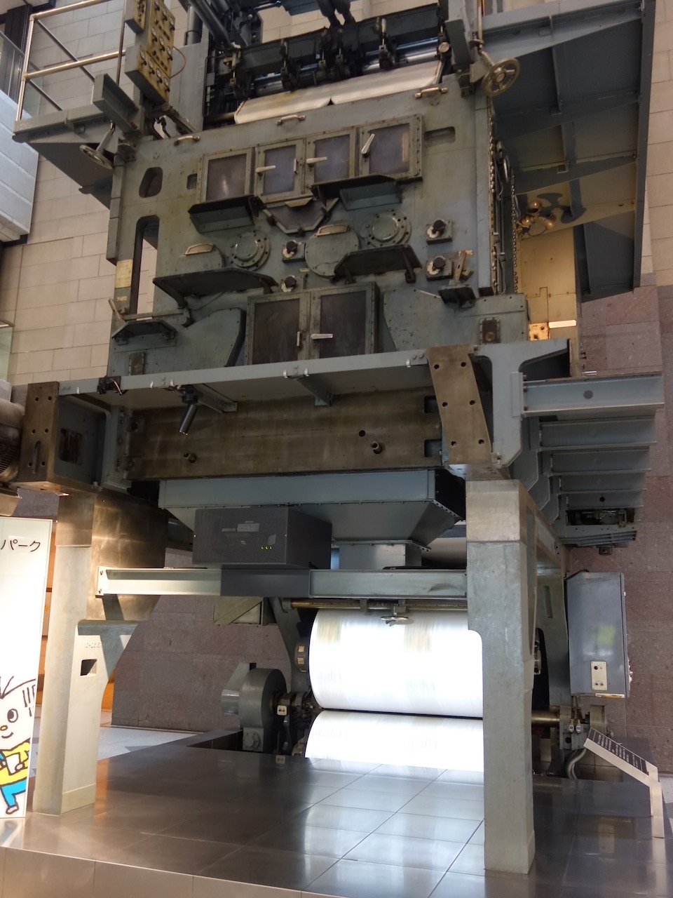 入り口の巨大な輪転機が圧巻。