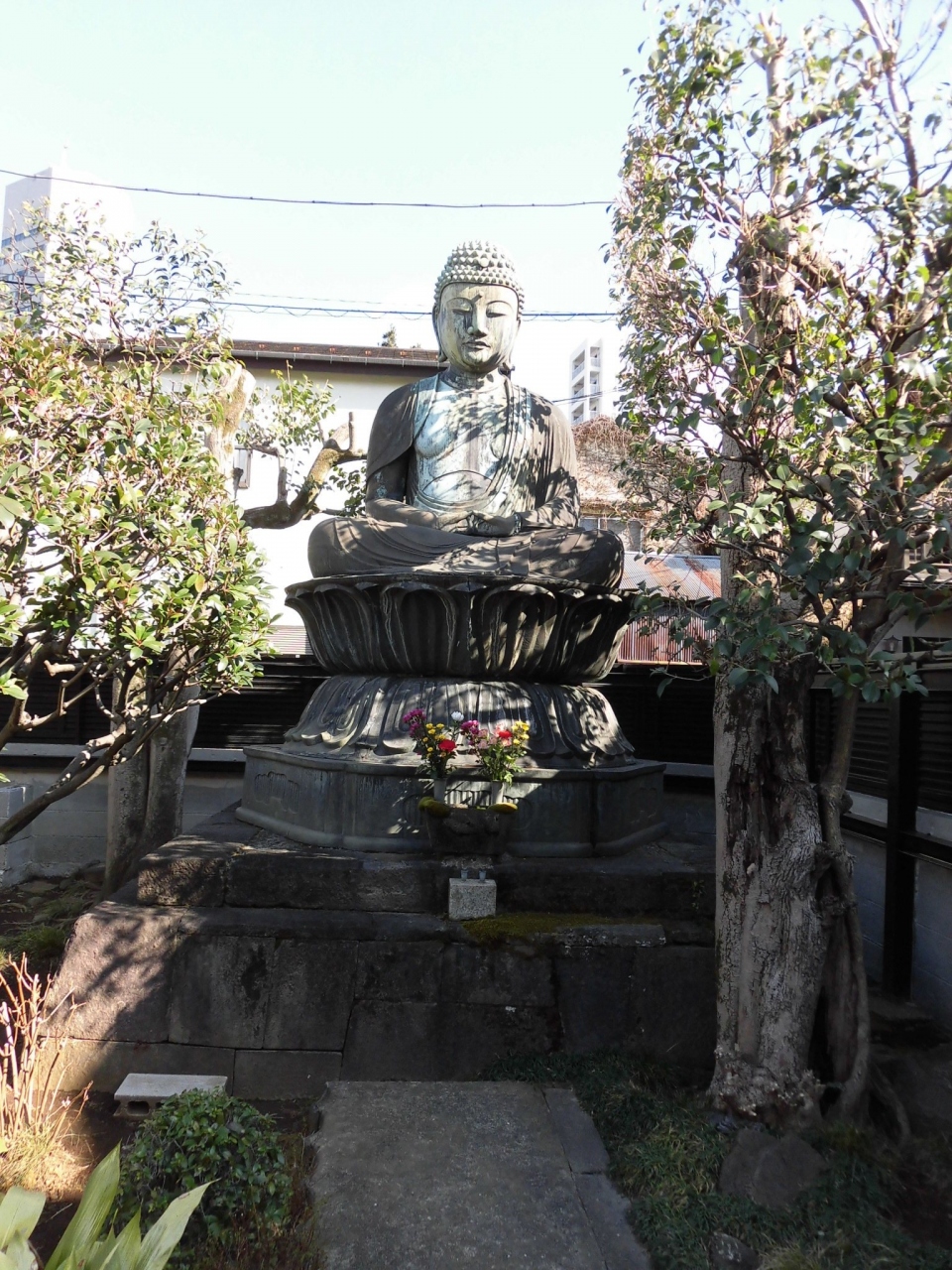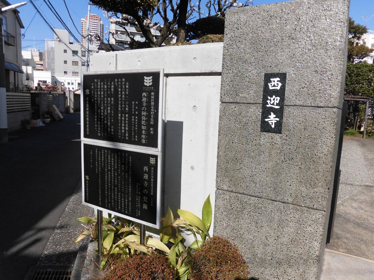 新宿区舟町にあるお寺に立ち寄りました。特に寺門などもなくて、境内に入ると小さめの本堂があります。どこかのんびりとした雰囲気のお寺だと思いました。門の手前に案内板があって、阿弥陀如来坐像と梵鐘が、新宿区の有形文化財として登録されている旨記載がありました。阿弥陀如来像は小さいながらも神々しいお姿だったので、思わず手を合わせてしまいました。