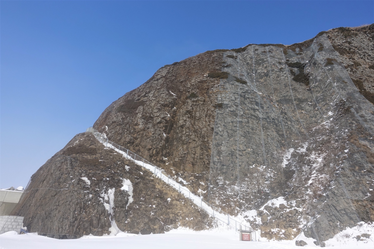 1つの岩とは思えない巨大さです。かなり急ですが階段も在って、登る事が出来ます。