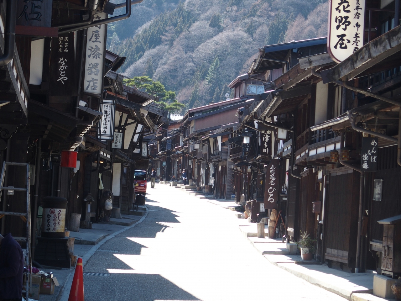 中山道の宿場町です。昔ながらの木造の家屋が軒を連ね、とても趣がある街並みが1KM以上にわたり続いています。あちこちで、絵になるような風景が点在し、絶景写真撮影のスポットになっています。外国から来たインバウンド客も目立ちました。