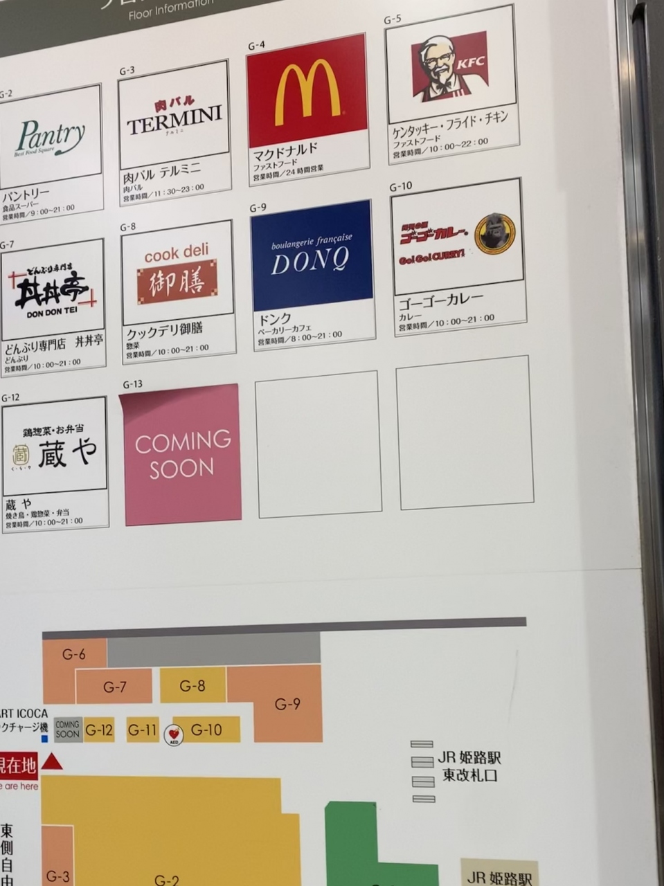 姫路駅近くのホテルに一泊しました。ホテル滞在中は何かとこちらに食料品の買い出しに行くことが多かったです。駅直結なので雨天でも買い物ができて便利です。飲食店をはじめ、ファッション、本屋さん、スーパーなんでも揃っていました。