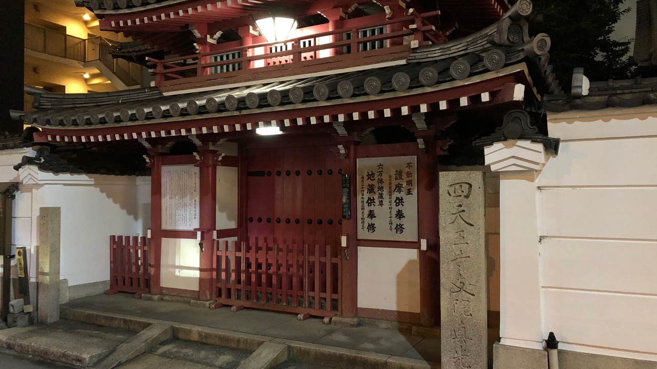 四天王寺は、大阪ミナミにある、聖徳太子が建てた大きなお寺です。その近くに、支院・真光院があります。四天王寺の境内とは別の場所です。小さいながら、朱塗りの派手な門があります。摂津国八十八箇所の一つでもあります。