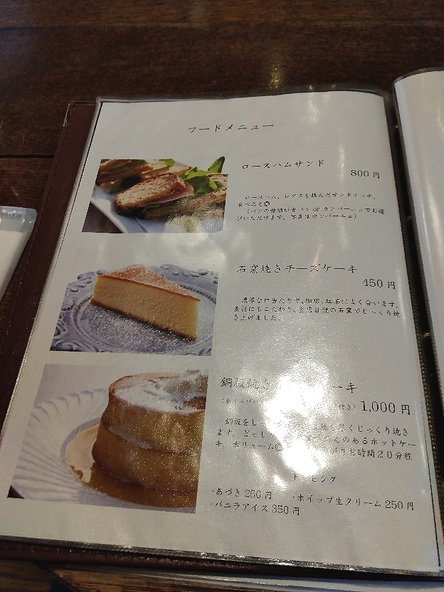 銅板焼きホットケーキが有名らしく、サンド系と悩みましたが、話の種に注文しました。ドリンクは別料金です。