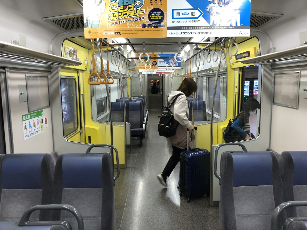 札幌や千歳都市圏のラッシュアワーも過ぎた時間だったのでこの電車は混雑していませんでした。余裕で着席出来ました。