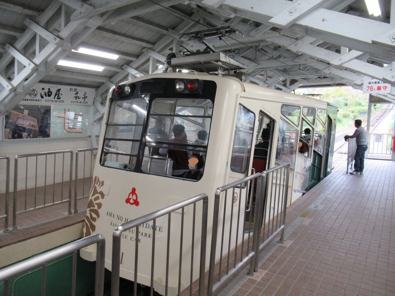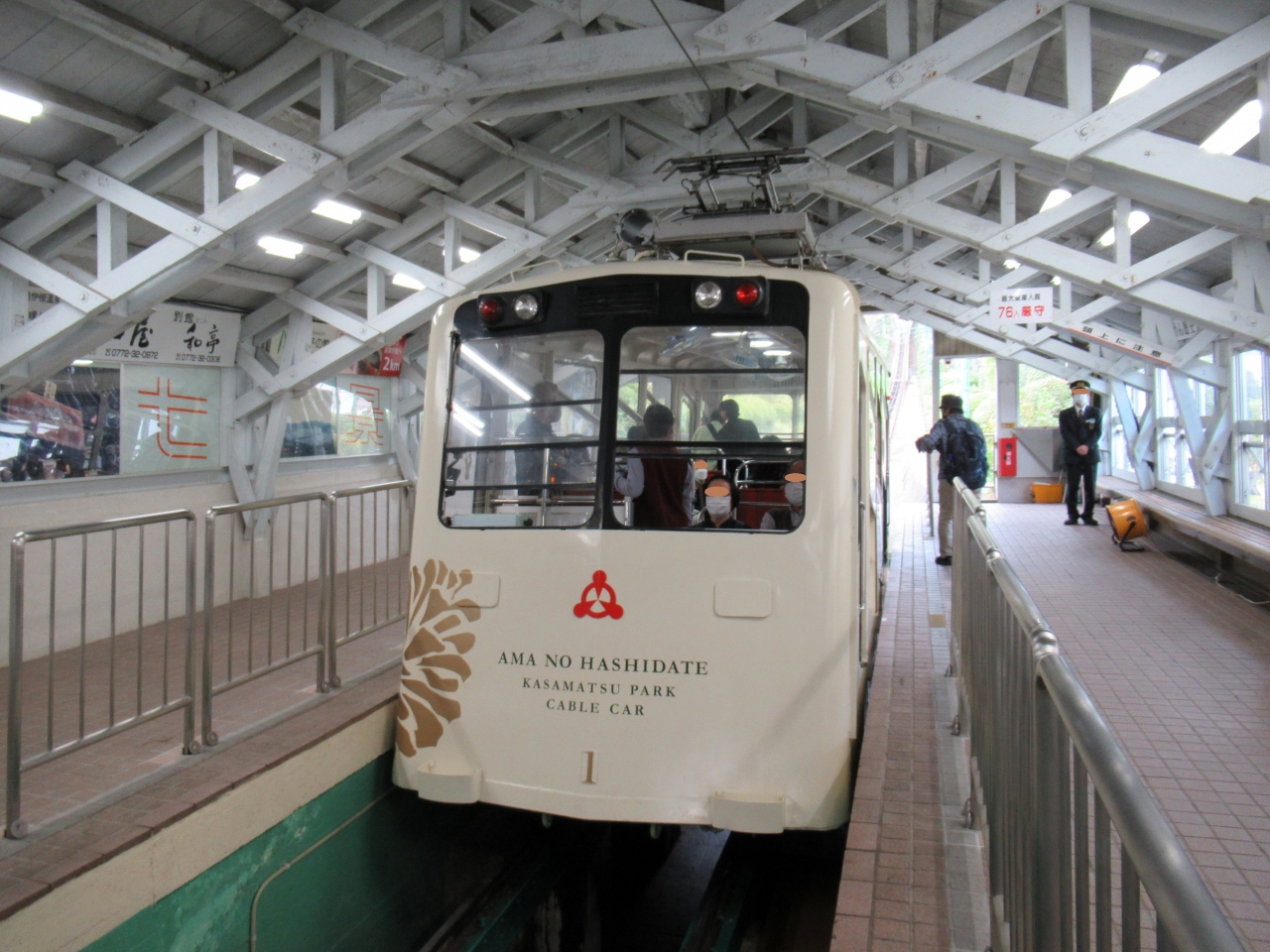 天橋立ケーブルカーは、京都府宮津市にある日本三景の天橋立の北側にある府中駅から傘松駅に至る丹後海陸交通のケーブルカー路線で、正式名称は天橋立鋼索鉄道だそうです。