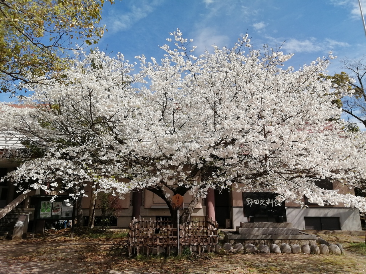 野田八幡宮の境内の一画にあります。野田地区住民の募金により建設された史料館です。江戸時代から明治時代にかけてのかつての野田村にまつわる古文書を中心に、野田八幡宮に伝わる刀剣類、甲冑類などが保管されています。収蔵数は5000点とか。すごいです。