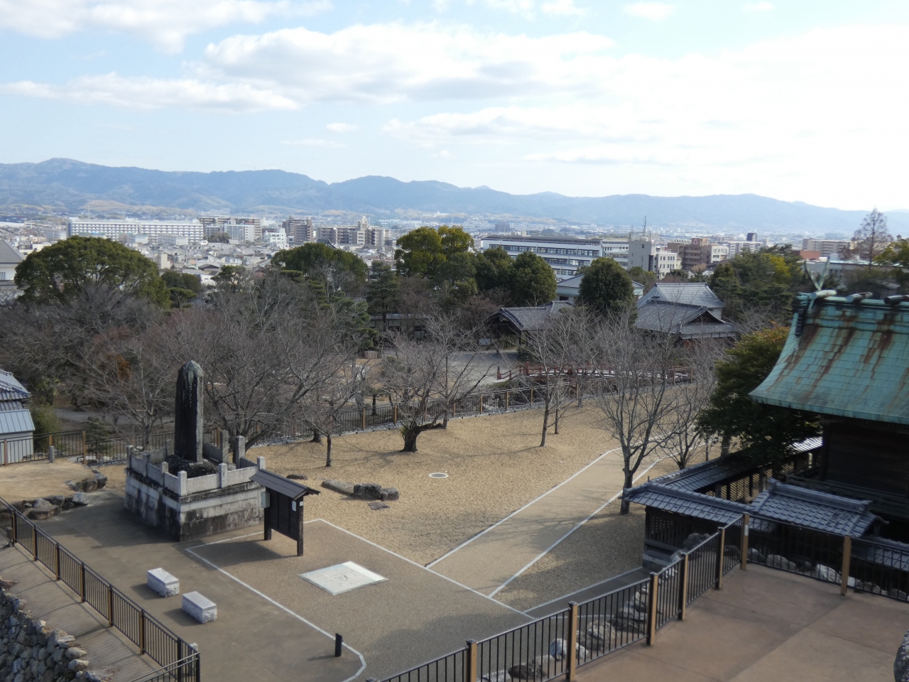 大和郡山城の中心に位置する石垣の展望台