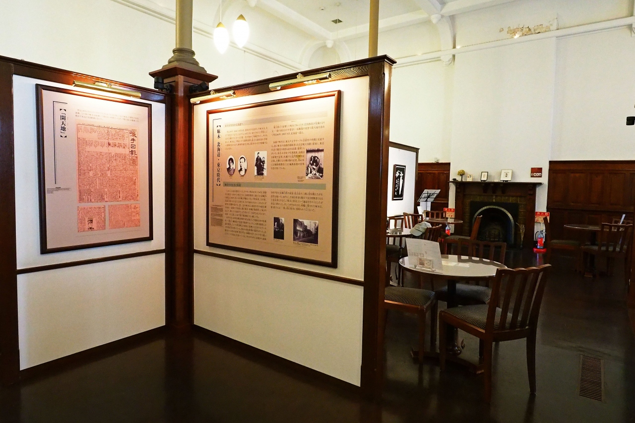 銀行の営業室だったスペースが常設展示室になっていて、啄木と賢治の青春時代や、彼らのゆかりの人々などをパネル紹介され、若き頃の2人をじっくり知ることが出来ました。