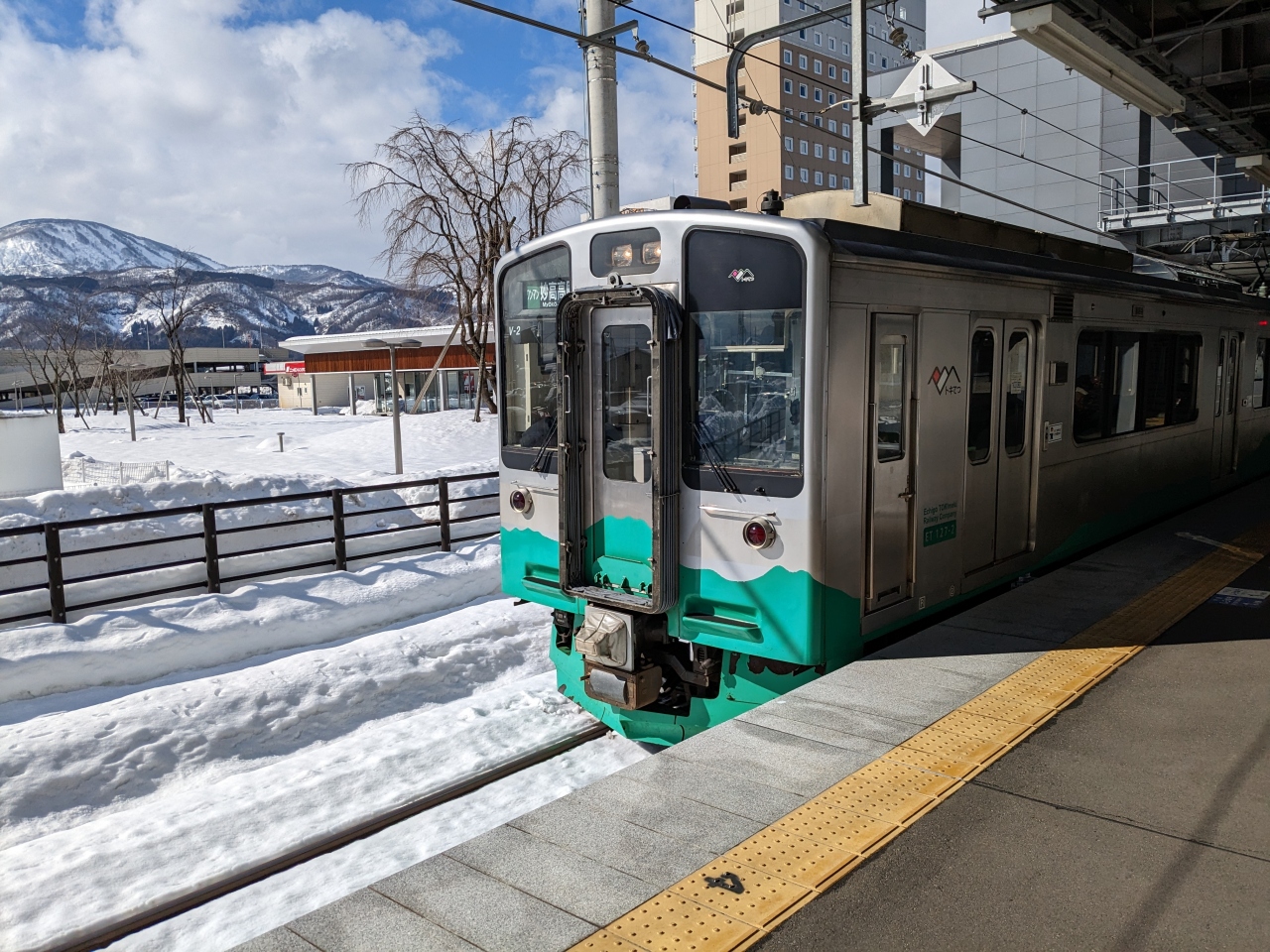 えちごツーデーパスで利用しました。山の中を進んでいきます。途中、二本木駅でスイッチバックを見ることができ、説明の放送もあります。運転手さんが運転台を移動せず、窓から顔を出してバックする形でスイッチバックが行われます。
