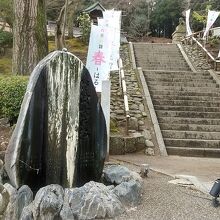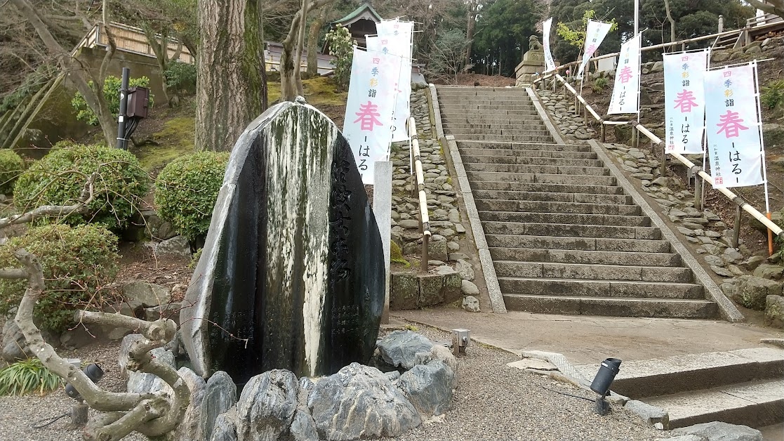 石段の下の神社の石碑には温泉が湧き出ていて、湯の花が付いているのが、湯量豊富な湯本温泉らしくびっくりしました。