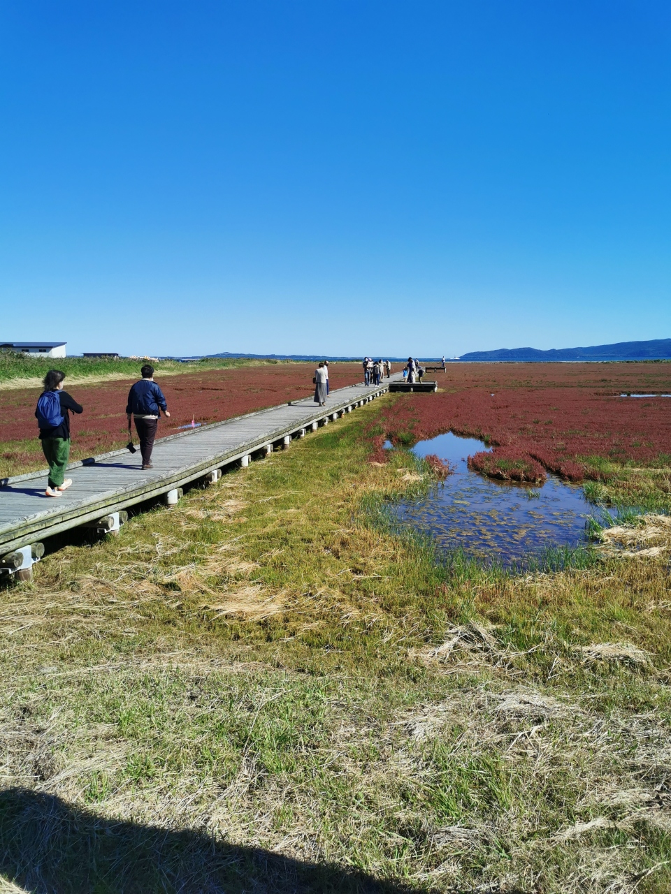卯原内サンゴ草群落地をドライブ旅行で訪問。ちょうどお祭りの真っ最中でした。湖にのびる木製の桟橋からサンゴ草を見る事ができます。時期がよくて真っ赤でした。「日本一サンゴ草群落地」の看板に偽りなしです。お祭りは出店も多くて、特に海鮮・牡蠣焼きがとても美味でした。
