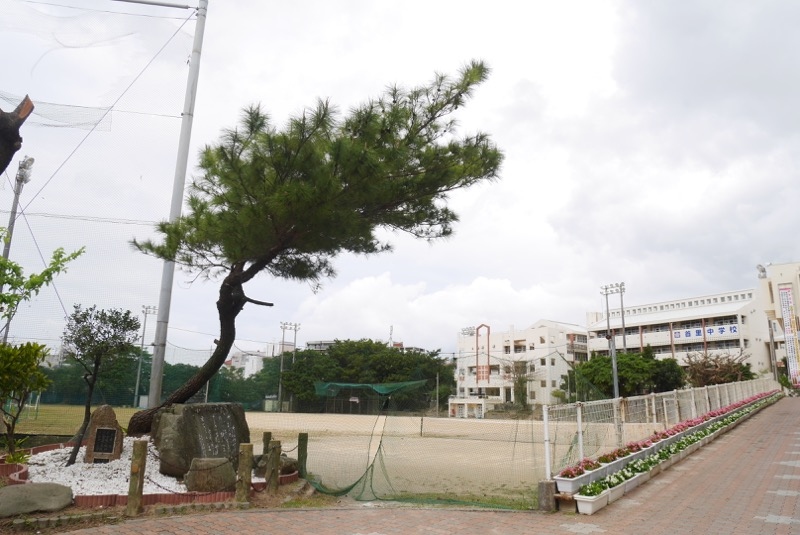 1500年ごろに最初の御殿が構えられ、何回かの移転を経てさいごに御殿を構えた場所は、いまは中学校のグラウンドになっています。せっかくなので、門からほんの数歩入って、この場所にかつては大きな建物があったのかぁ…と、しばし想像しました。