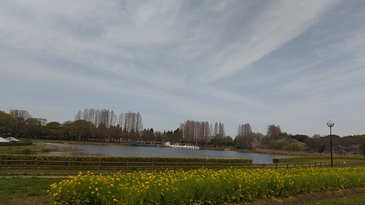 桜が満開でソメイヨシノ、シダレザクラを見ながら散策。バーベキューができるエリアもあり賑わっていました。