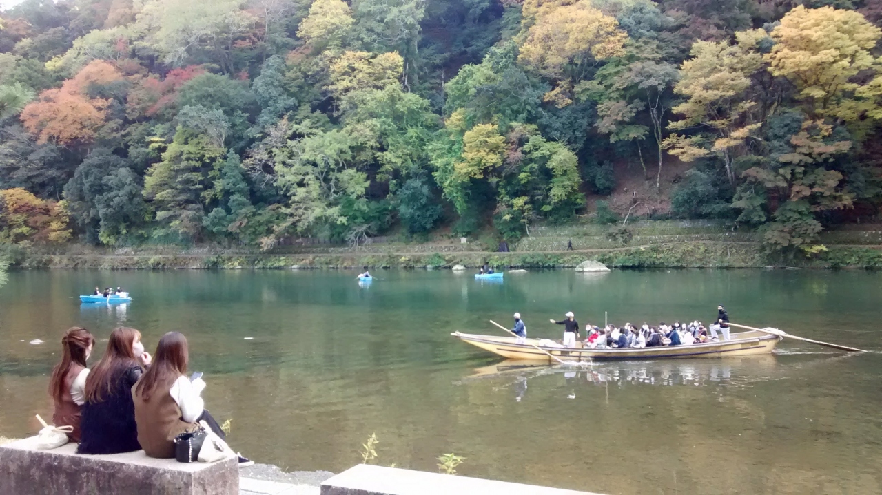 新型コロナウイルス蔓延で大打撃を受けた嵐山の観光で、観光客の激減ぶりに本当にビックリさせられましたが、添付写真のように、嵐山遊覧船は結構盛況でした。観光客が少なめなので、ゆっくり落ち着いて観光できた点は良かったでした。
