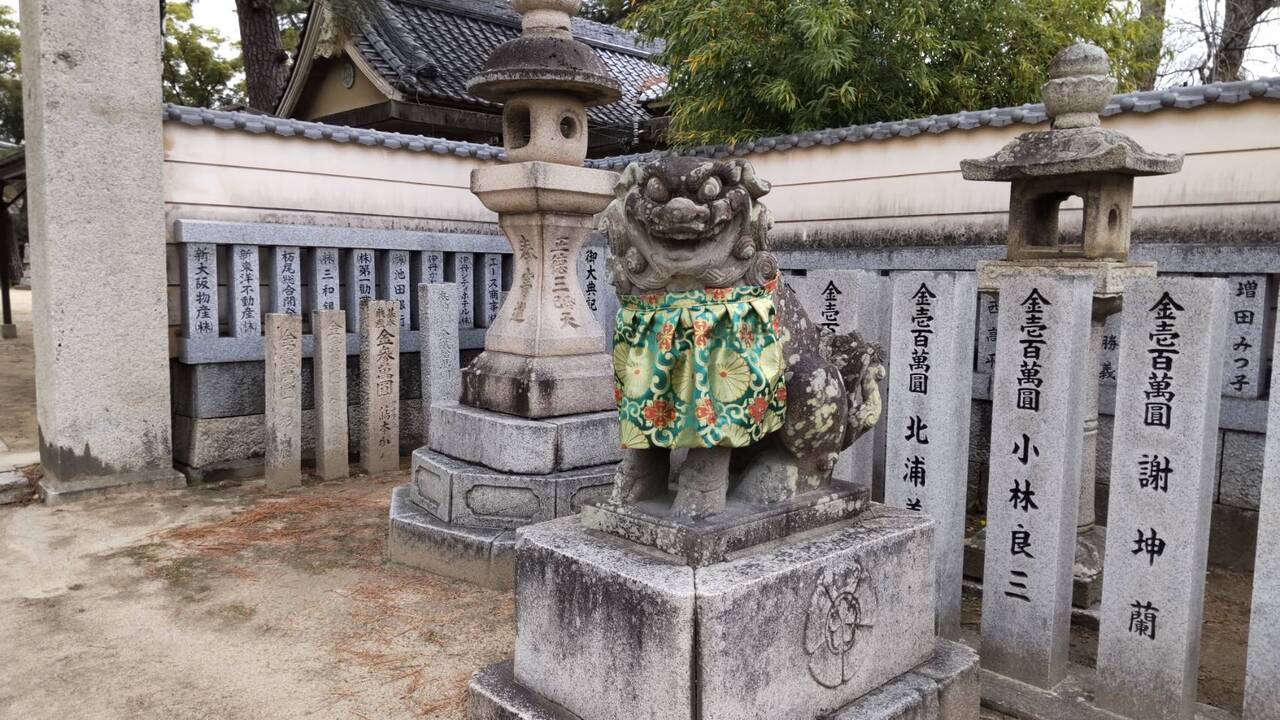 猪名野神社は、伊丹市にある大きな神社です。境内にはたくさんの末社があります。相撲の土俵もありました。この神社は、孝徳天皇の時代に猪名寺に創建だれたものが、904年現在の場所に遷座されたとのことです。境内は、戦国時代の有岡城跡の一部であり、国の史跡に指定されています