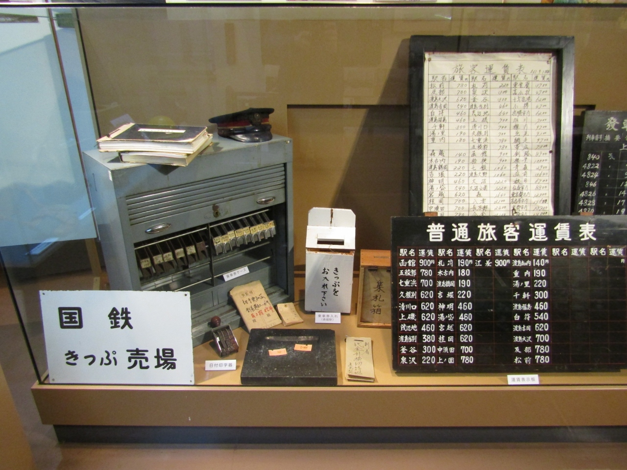 知内町の歴史や文化を紹介とありますが、展示品は旧石器時代から縄文時代にかけての出土品、旧国鉄松前線の鉄道部品、昔の農機具や日用品などが展示されていました。