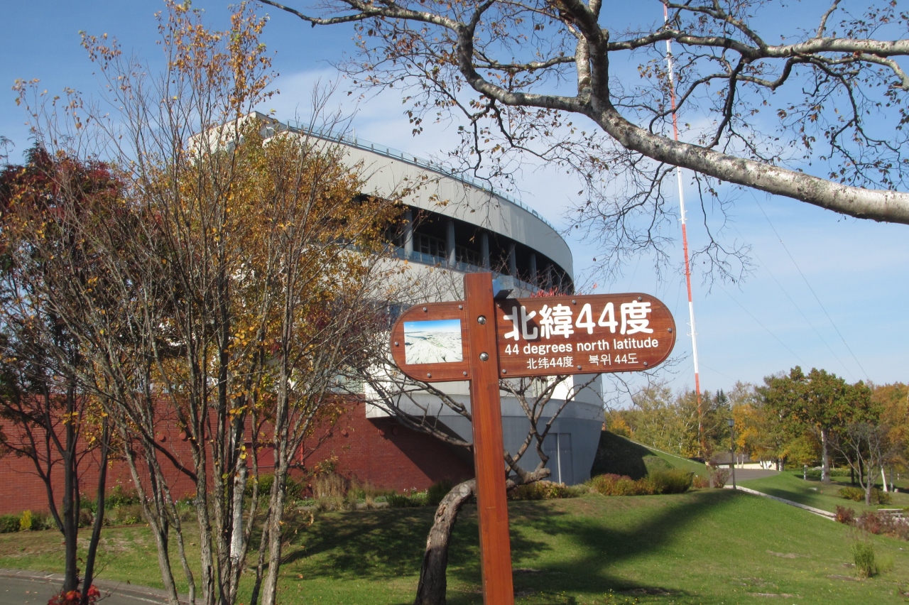北緯44度の標識がある天都山には