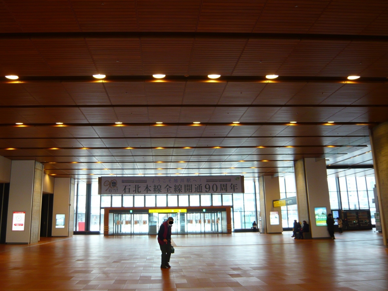 構内は木工産業が盛んな旭川に相応しい道内産のタモ材が壁面や天井に大量に使用され広い空間も確保した木の持つ温かい内装が施された素晴らしい駅舎として生まれ変わっています。