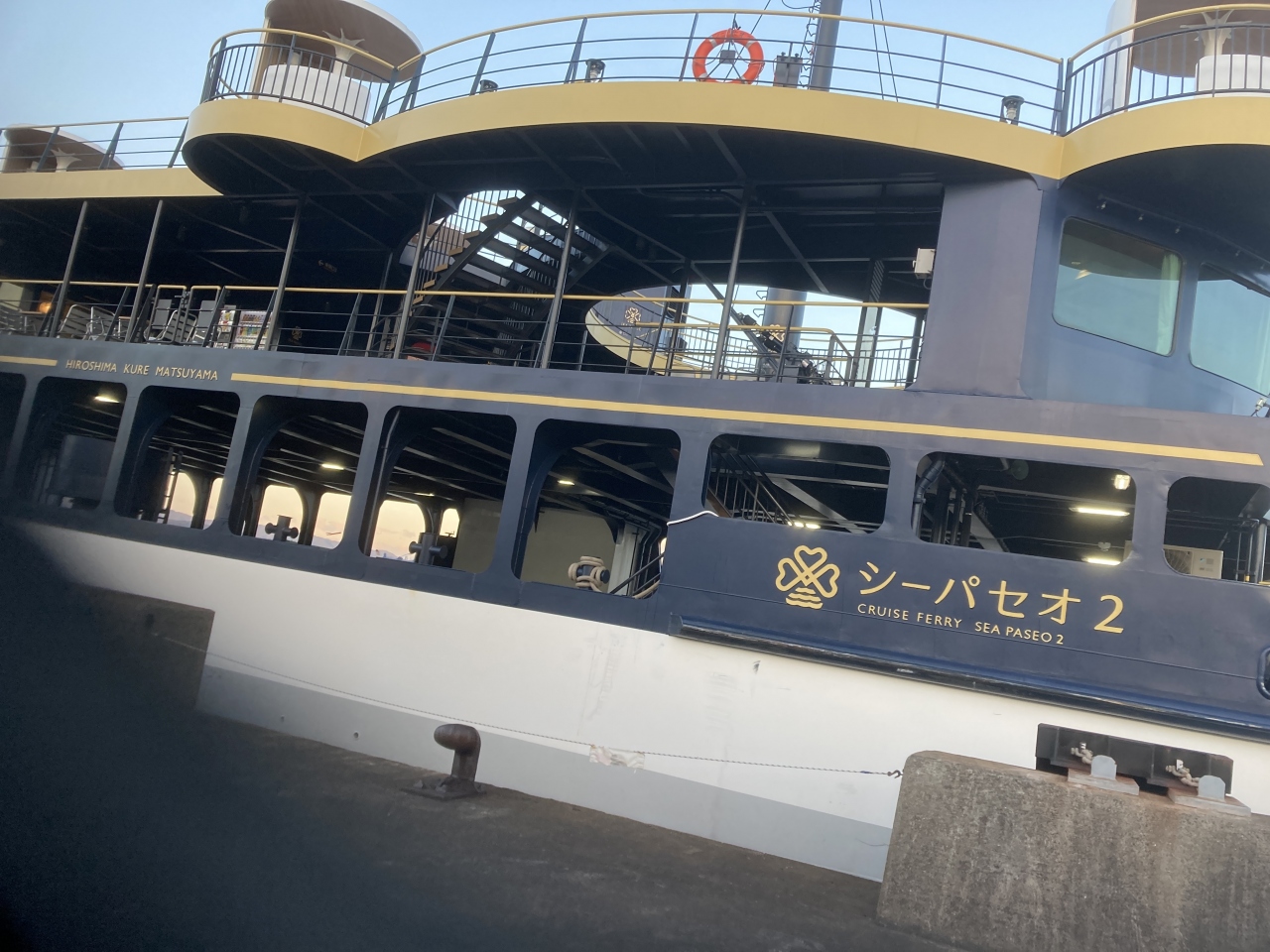 呉港からフェリーで愛媛県の松山観光港まで行きました。7時30分発のシーパセオ号に乗り込み、瀬戸内海の美しい景色を見ながらのんびりと2時間の旅を楽しみました。