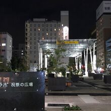 大分駅北口にあるイベント広場です。野外にありますが、大きくて高い屋根が付いています。土日を中心に、イベントなどで使われています。音楽イベント、大分を拠点とするスポーツチームの試合中継などが行われます。