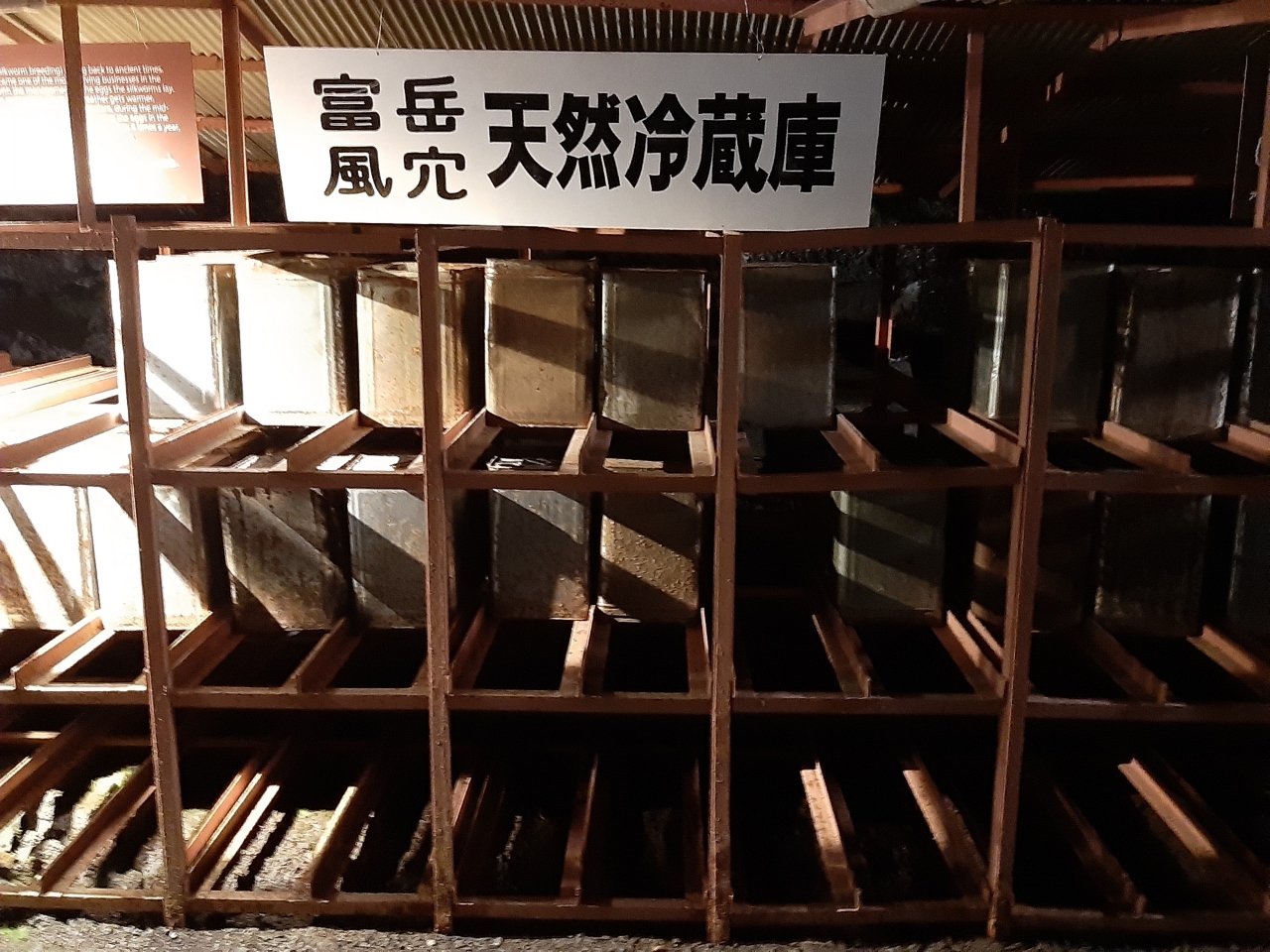富岳風穴の中にもかつては天然氷があったそうで、その再現がされています。低温で安定した気候を利用して、蚕の飼育もおこなわれていたとのことです。