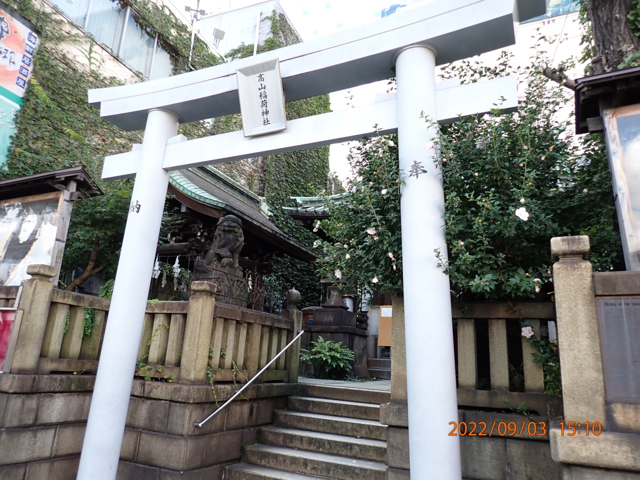 品川駅周辺観光で立ち寄りました。高山稲荷神社は、JR品川駅から徒歩数分、品川プリンスホテルの近くにある神社です。 この神社の創建は不詳です。 境内には、縁結びにご利益がる「おしゃもじさま」と呼ばれる石灯籠があり、港区の登録有形民俗文化財に指定されています。 ただ、名前の由来は不明で、一説には、石垣横丁(しゃくじんよこちょう)を間違って「おしゃもじ横丁}と言われていたことから名前が付いている可能性もあると説明柱に書かれてました。