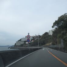 湯河原から熱海まで海岸線に沿って造られている6㎞程の有料道路です。曲がりくねっていますが、道路全体が平坦なため運転しやすく、訪れた時は海を眺めながら快適なドライブが楽しめました。地元の方の話では、時として高波の影響を受け通行止めになったり、夏の海水浴シーズンには大渋滞になったりすることもある道路とのことでした。晴れた日は海の青さを感じながらドライブできる気持ちよい道路です。