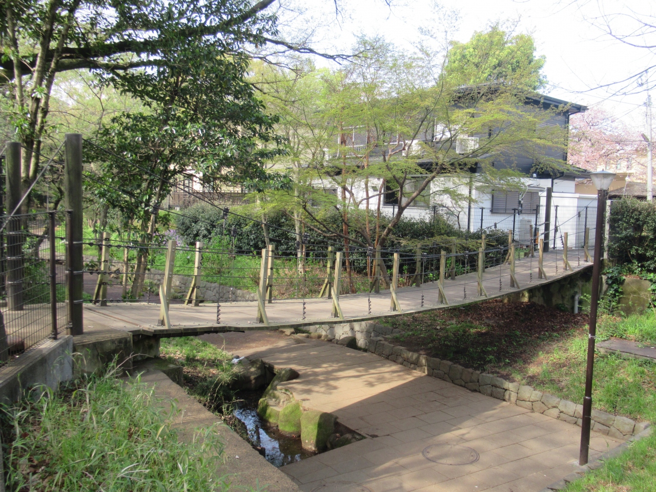 石神井川沿いの桜並木を訪れた際に立ち寄りました。王子駅北口から10分ほどの金剛寺墓地の裏に造られた緑地です。かつての石神井川の流れを利用して造られた緑地で、桜やツツジ、アジサイ、もみじなどが植えられています。ちょっとした遊歩道もあり、緑地を横切るようにして20mほどの揺れる吊り橋も造られています。こじんまりした緑地です。桜並木を訪れた際に立ち寄ってはいかがでしょうか。