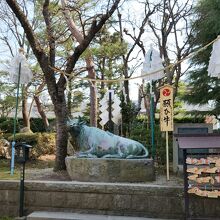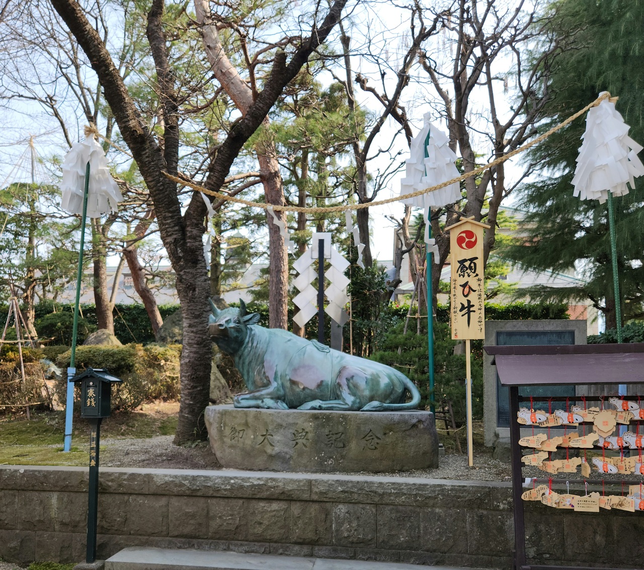 拝殿前右側には「願い牛」があり触ると願いをかなえてくれるそうでかなりつるつるでピカピカになっていました^^