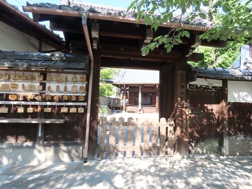 哲学の道沿いに目立つ「幸せ地蔵」。そのお堂が所属するのがこの弥勒院です。その元は17世紀末創建の長泉寺といい、聖護院配下の寺院でした。明治になってから、明石の弥勒院(18世紀半ば創建)との合併で現名称となり、時代が昭和に変わってからこの地に移ったようです。地蔵堂とは対照的に観光寺院ではありません、という雰囲気で門は閉ざされていました。