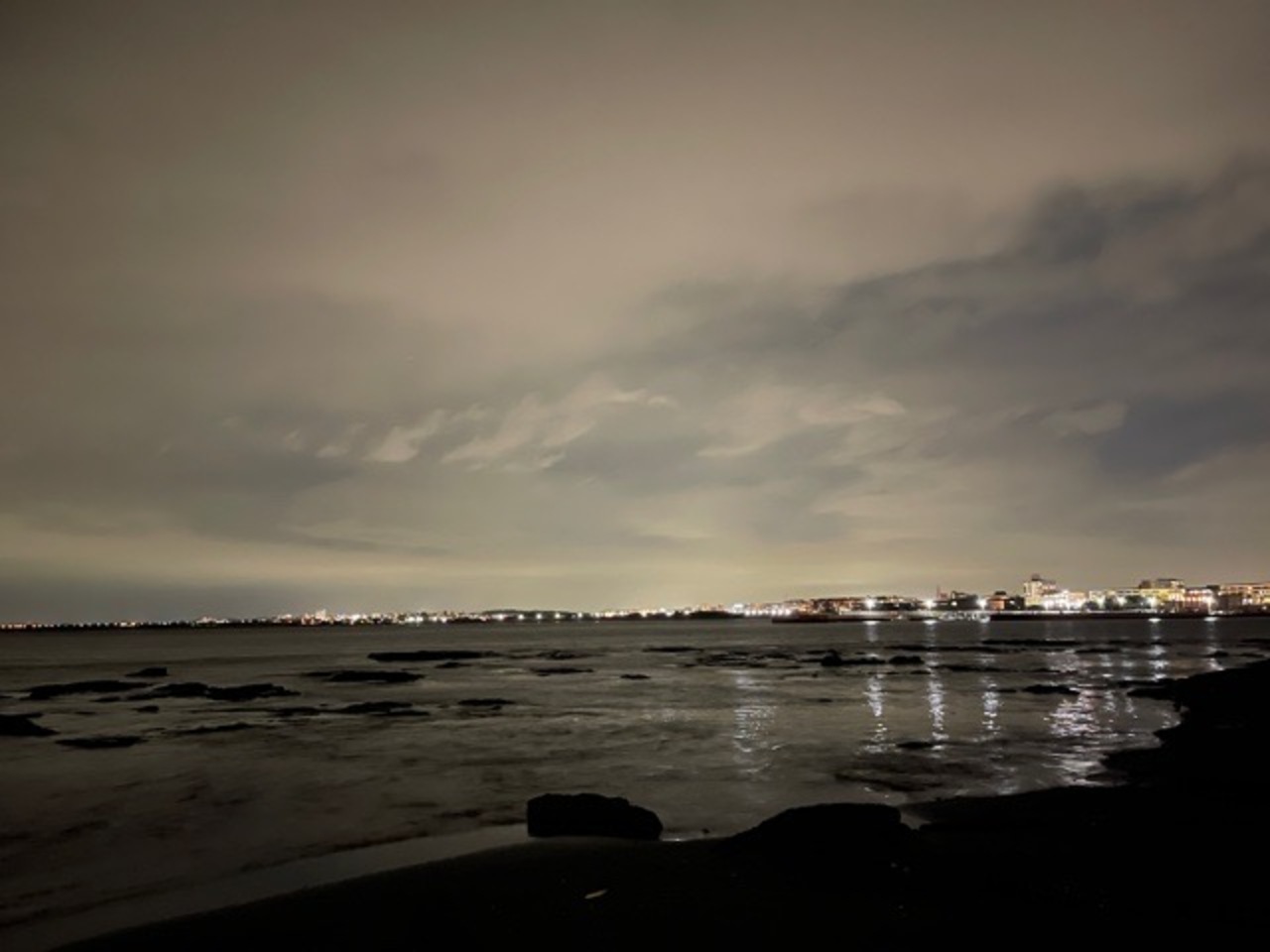 車を停めた駐車場から江の島までは少し歩きました。しらすぼしの有名なお店の前を通って、到着しました。公共トイレの並びにしらすぼしのお店やレストランがありました。夜になると、坂道を登っている人と、おりていく人でかなり混んでいました。